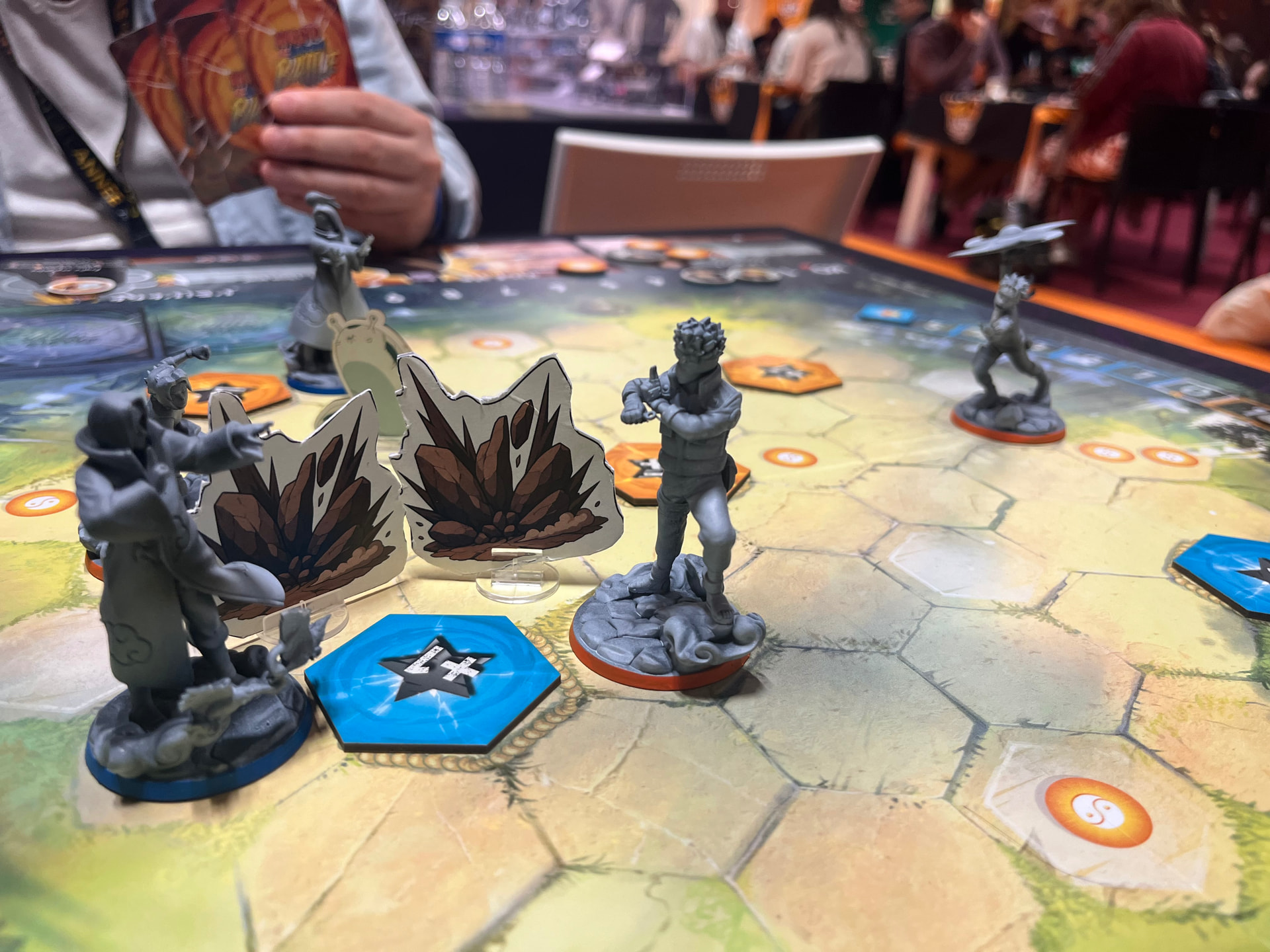 On se déploie sur un plateau qui comporte 6 zones d’apparition où on déploie 1 perso de sa team à tour de rôle. Pas de chacun son côté, on peux apparaitre à 3 case d’un perso adverse pour de l’action dès le tour 1.