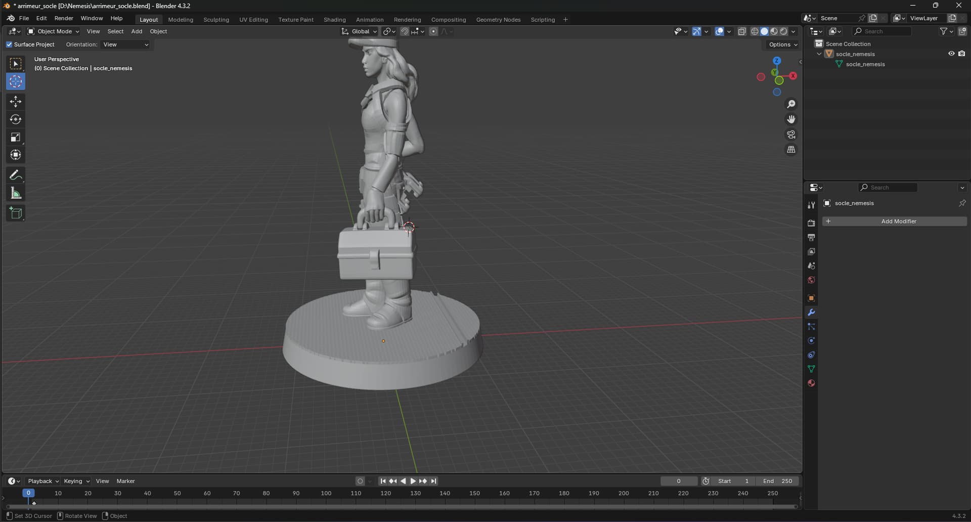 Voila la figurine avec le socle, par contre j’ai du jouer sur l’echelle de la figurine (elle était trop grosse), et même avec ça je la trouve encore trop grosse