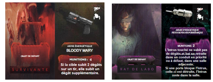 Puis le doute me saisit en lisant la page 5 du livret de règles (listing des éléments du jeu). Une image montre 4 cartes “objet de départ” pour les persos concierge, sentinelle, hacker, xenobiologiste. What the fuck!!??