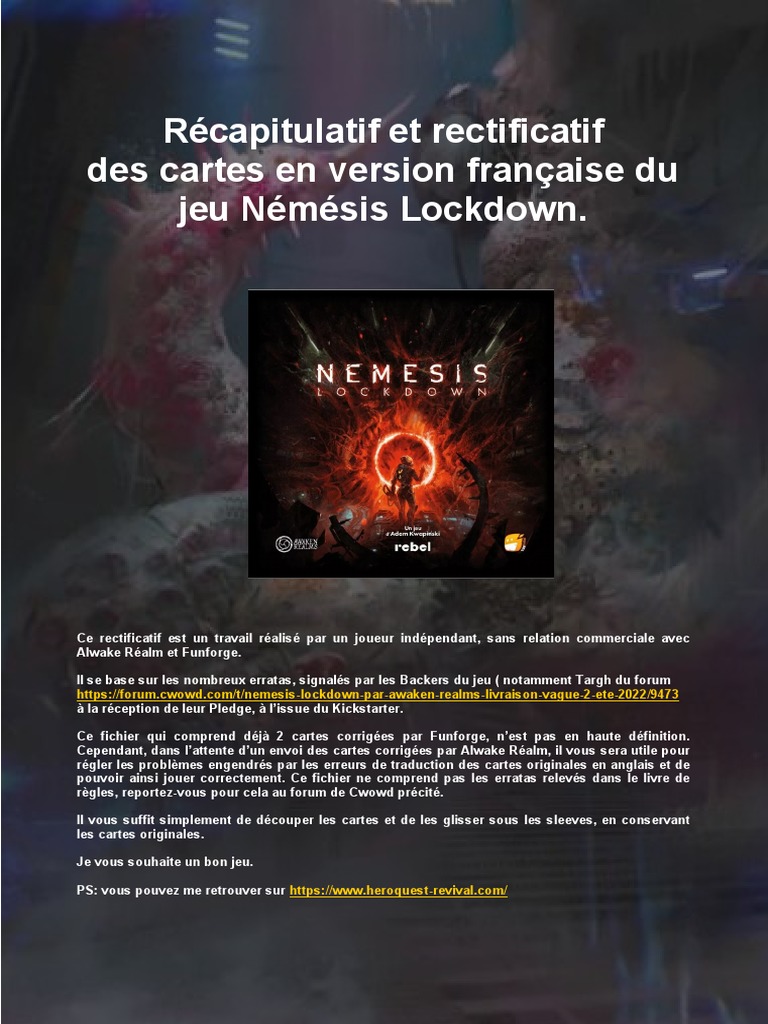 Motivé à faire baisser ma pile assumée, je décide de déballer et ranger Nemesis Lockdown, en vue d’une session imminente. Mais les glandes me prennent lorsque je m’apercois qu’il manque 2 cartes “Objet de départ” pour la survivante et le rat de labo.