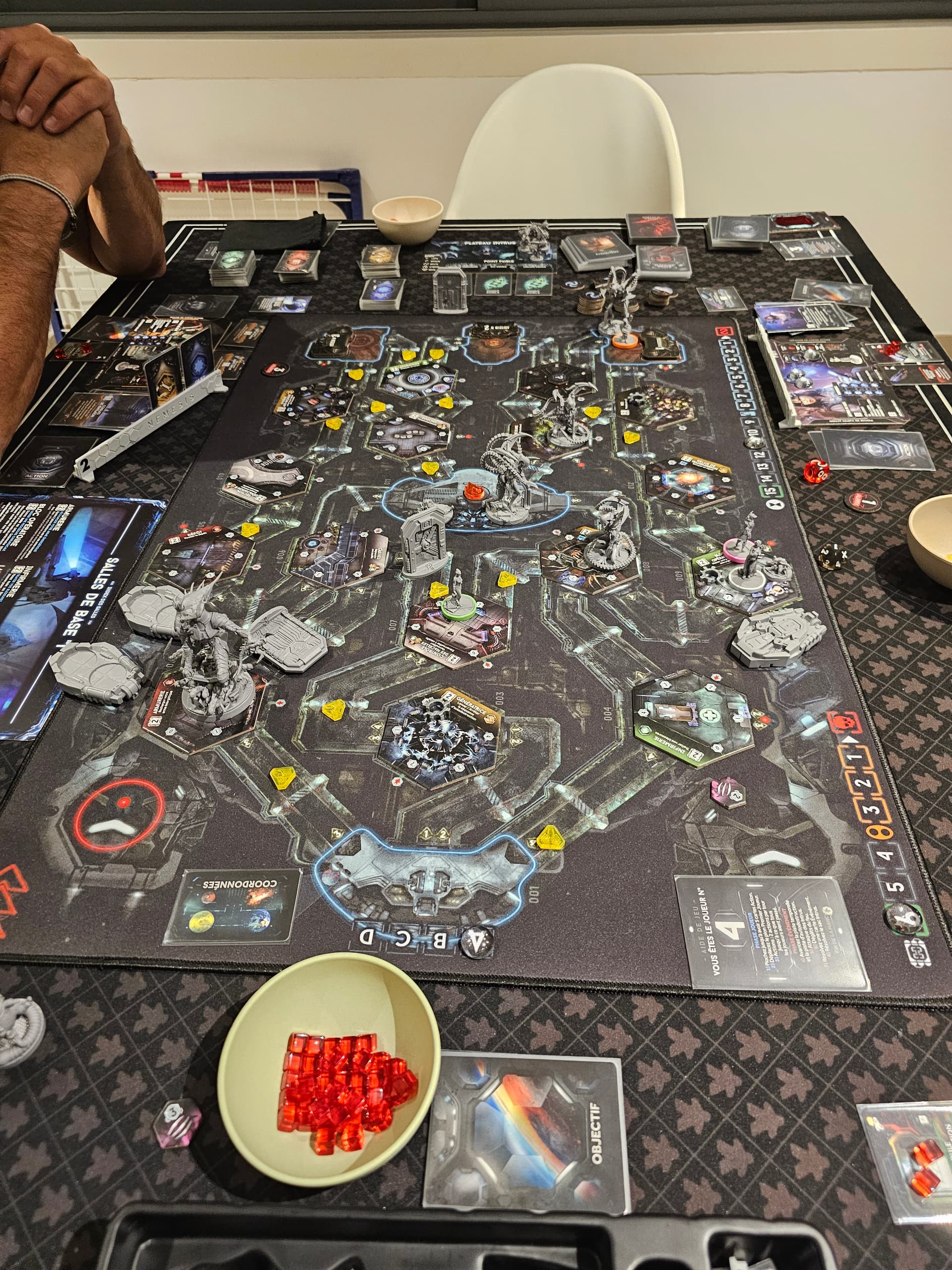Donc j’ai zappé celui de Nemesis, les plateaux sont de toute manière très bien. Maintenant, je préfère prendre les playmats quand ils apportent quelque chose (emplacements de cartes ou autres).