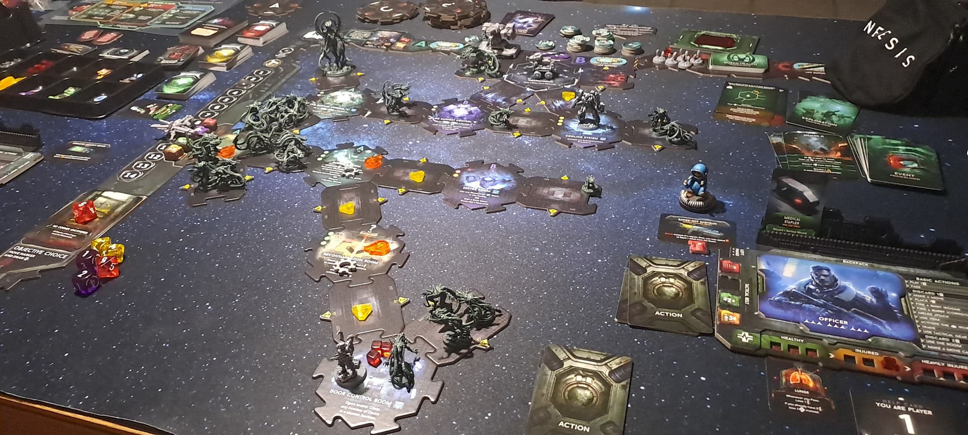 Nemesis: Retaliation est un jeu de plateau thématique horreur Sci-Fi semi-coopératif pour 1-5 joueurs, créé par Adam Kwapiński et publié par Awaken Realms. C’est la partie finale et épique de la trilogie Nemesis (ouais, enfin si ou zappe le Legacy, LOL). Cette fois, vous jouerez en tant que membre d’une escouade de Marines pleinement conscients (vraiment..?) de ce qui les attend – préparez-vous à de nombreuses nouvelles mécaniques et à des moments cinématographiques encore meilleurs, à des trahisons d’amis et à un assaut de la HORDE alien !