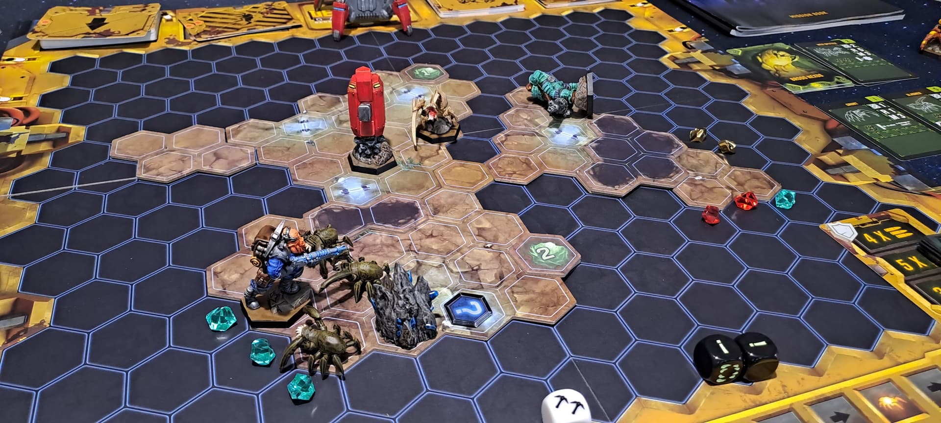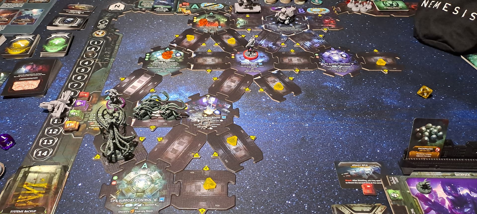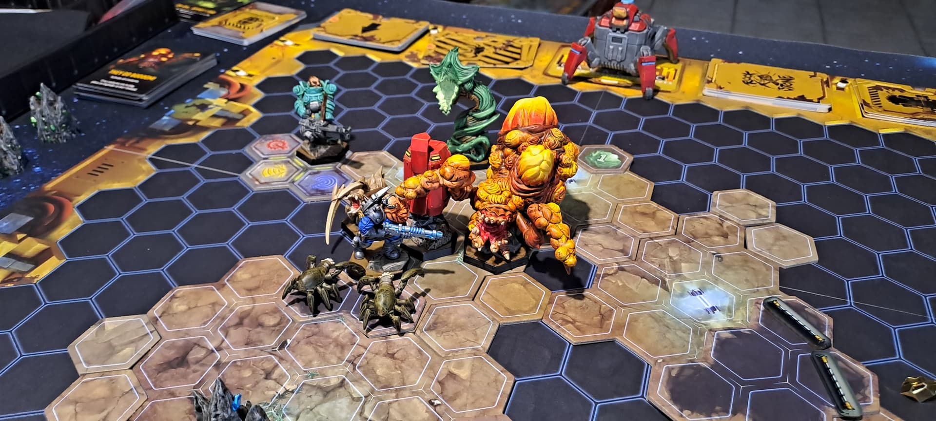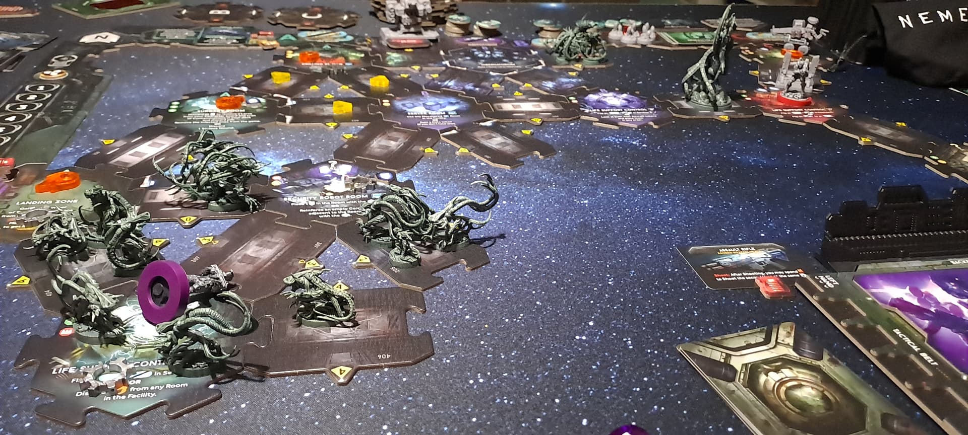 Peu de choix à faire à son tour, des aliens qui restent pendant 4 tours dans le même corridor car l’Event ne les fait pas se déplacer et d’autres qui apparaissent en masse à la zombicide… C’était la dernière chance que je donnais à Awaken Realms et se sera le dernier pledge, je ne suis vraiment pas convaincue de leurs jeux, playtests/équilibrage à revoir, figurines alien moches et mal finies ( les 24 millions récoltés n’ont pas certainement pas suffit). Ils sont bons pour vendre un univers mais ça s’arrête à peu prêt là… ![]()