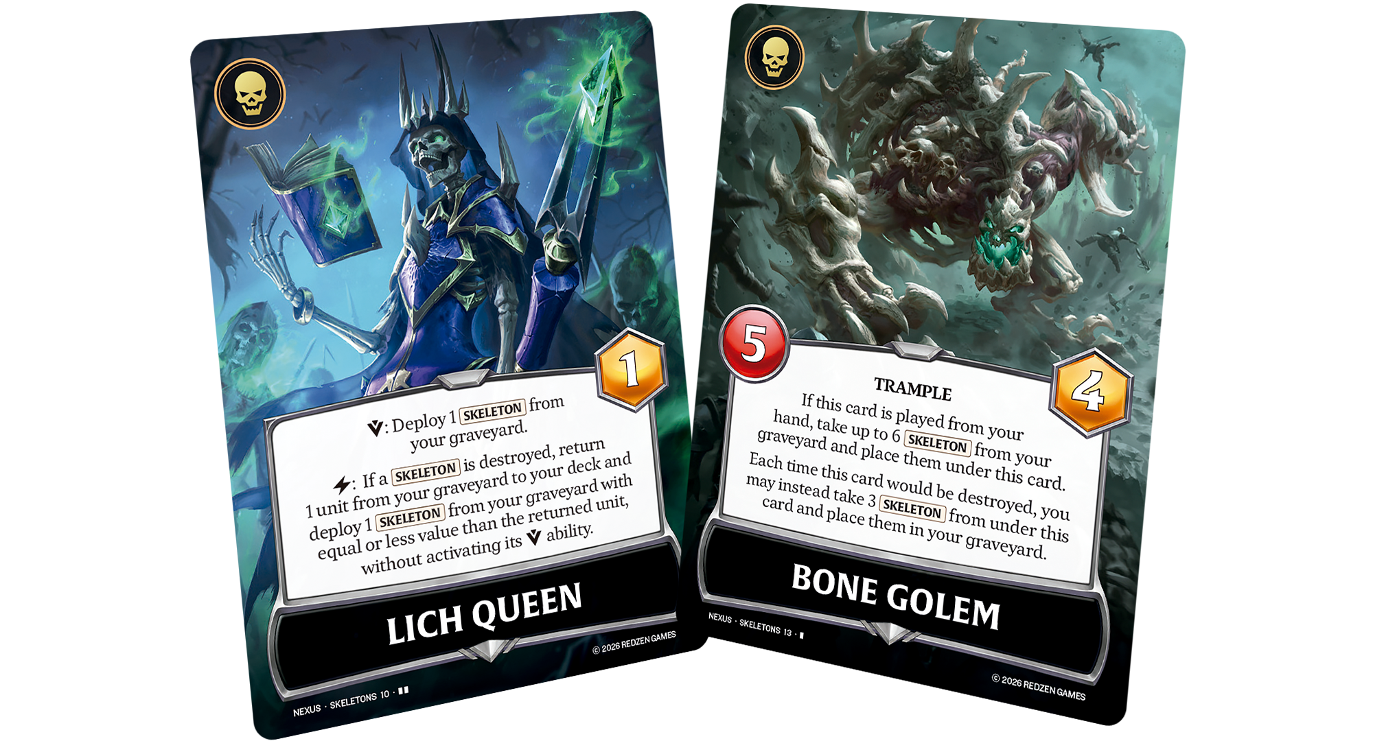 Démon : le joueur alignant cette faction commence la partie avec une énorme créature enchaînée par quatre cartes en début de partie. Pour faire sauter les chaînes et le libérer, vous devez accomplir certaines actions mentionnées sur chacune des 4 cartes en question, lesquelles sont plutôt coûteuses…