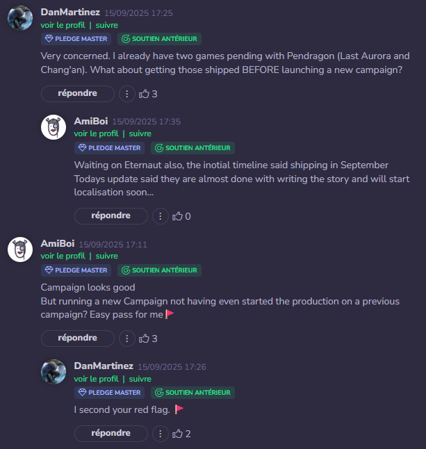 Donc si c’est pareil pour No More Dead, j’imagine qu’il sera possible de backer alors que les autres projets seront en production et même très probablement livrés. Vu leurs habitudes, je ne serais pas étonné de voir une date prévue de livraison fin 20026 ou plus probablement Q1/Q2 2027. Mais bon, on en saura + demain.