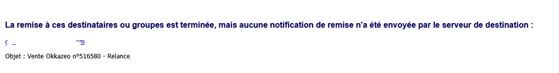 ou alors le serveur de destination n’autorise simplement pas l’envoi de notifications de remises ? (en général, quand l’adresse n’existe pas/plus, le message est plutôt explicite et pas du tout celui là)
