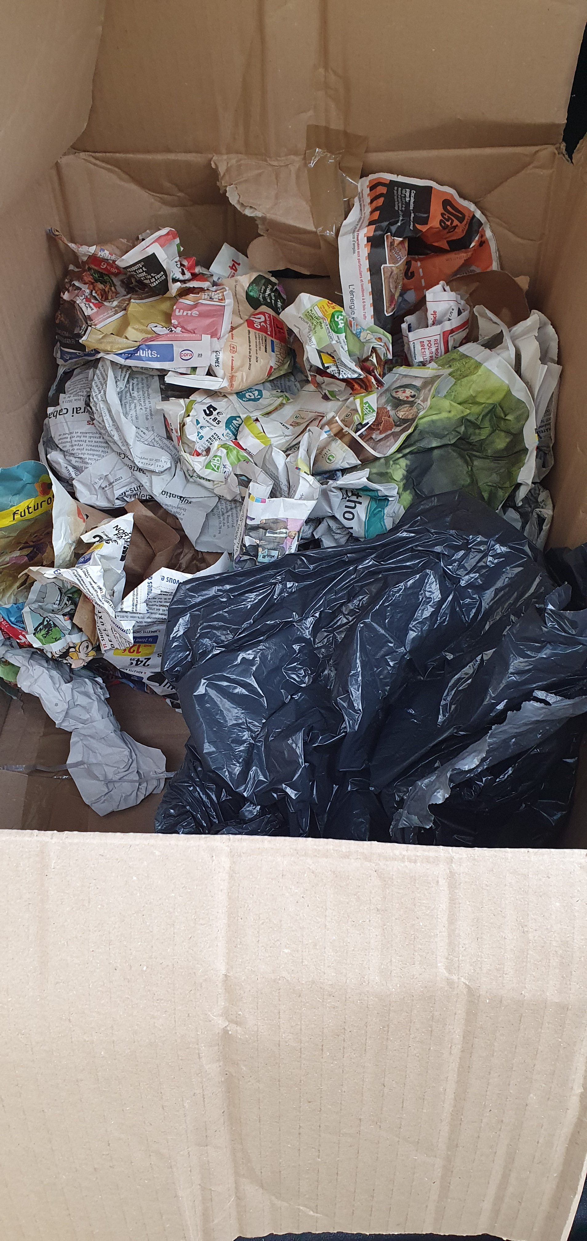 J’ai d’abord cru que le carton était vide car rien dans la partie défoncée .. mais au final, carton 2 fois trop grand et il y a bien quelque chose au fond. Emballé dans un sac plastique avec cette protection dans le carton
