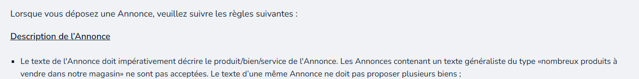 De mon côté j’ai horreur de ce genre d’annonces mais je suis peut être un peu extrême. Mais pour en revenir à ta question initiale je t’ai mis le règlement qui explique pourquoi ton annonce peut être supprimée car non conforme