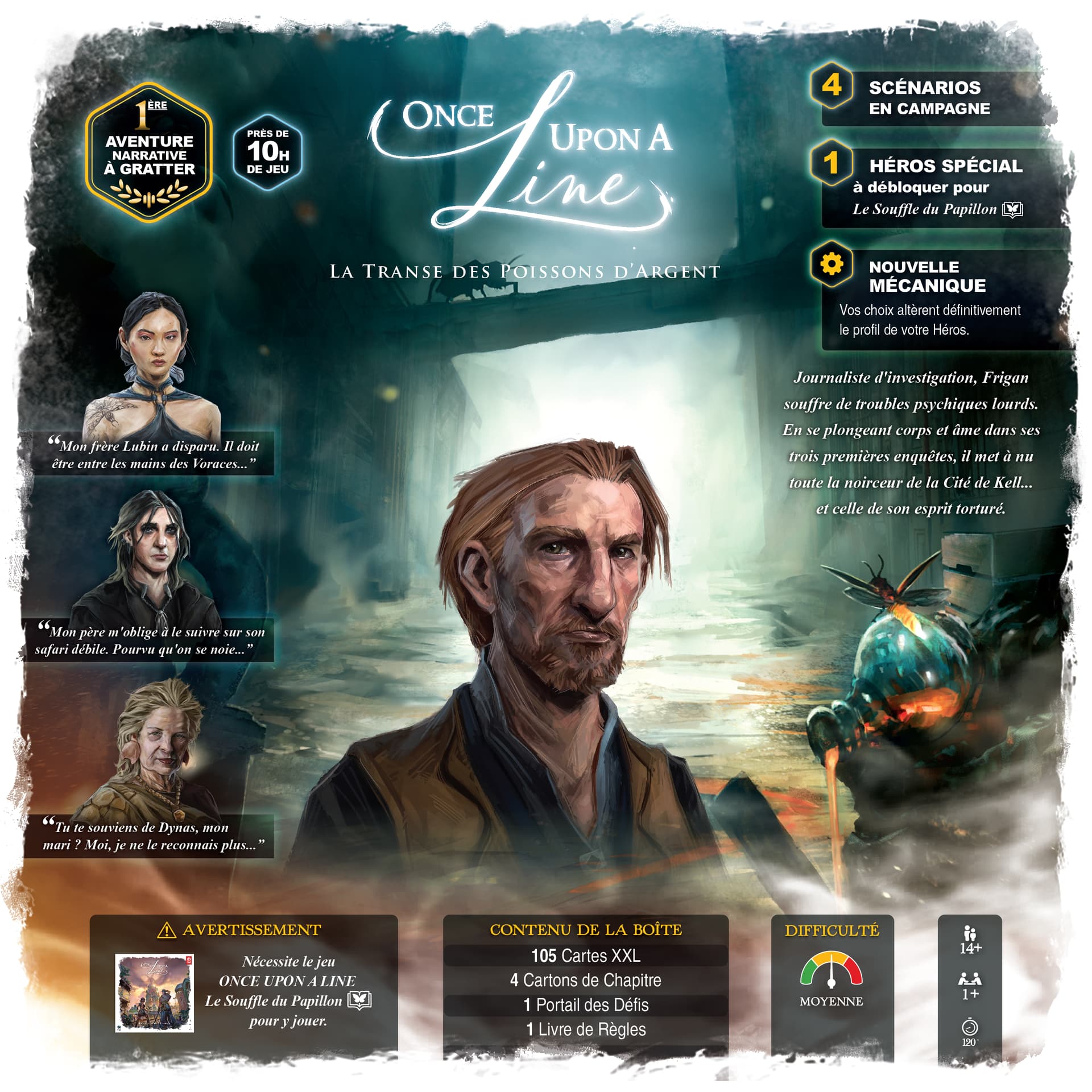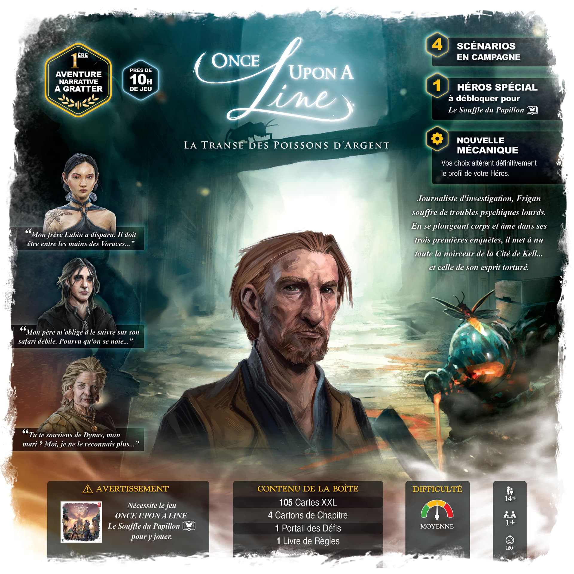 Ah, une remarque sur lâensemble des visuels de dos de boites : jâai trouvĂ© que ça montrait essentiellement des humains (logique vu que câest eux qui vivent des aventures), alors que ce qui fait rĂȘver apriori, ce sont les caractĂ©ristiques de lâunivers : insectes gĂ©ants, profondeurs insondables, etcâŠ