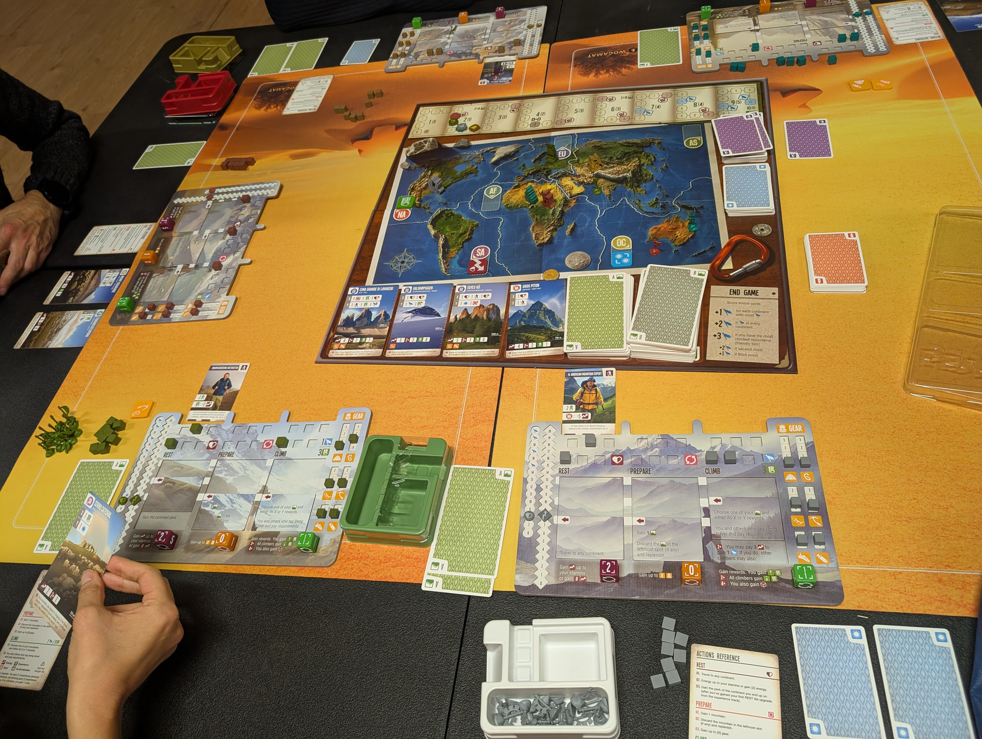 Par défaut, le repos permet de se déplacer sur la carte et de regagner de l’énergie, en vue de grimper une montagne. La préparation permet de piocher une carte de montagne, et l’ascension permet de gravir une montagne, si on dispose de cartes montagne.