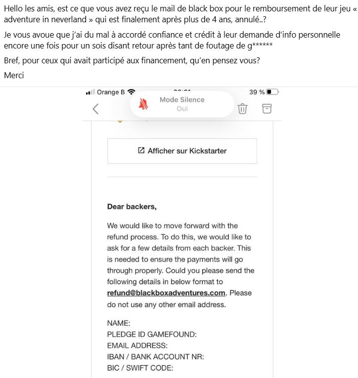 Que les 2 gus de black box ont récolté 750k des backers, ont payé 122k pour la prod il y a 4ans, puis 0€ depuis plus de 2ans mais ont versé à blacbox (leur société): 5800€/mois pendant 4 ans, en ont ponctionné 2000€ chacun pendant 4 ans.