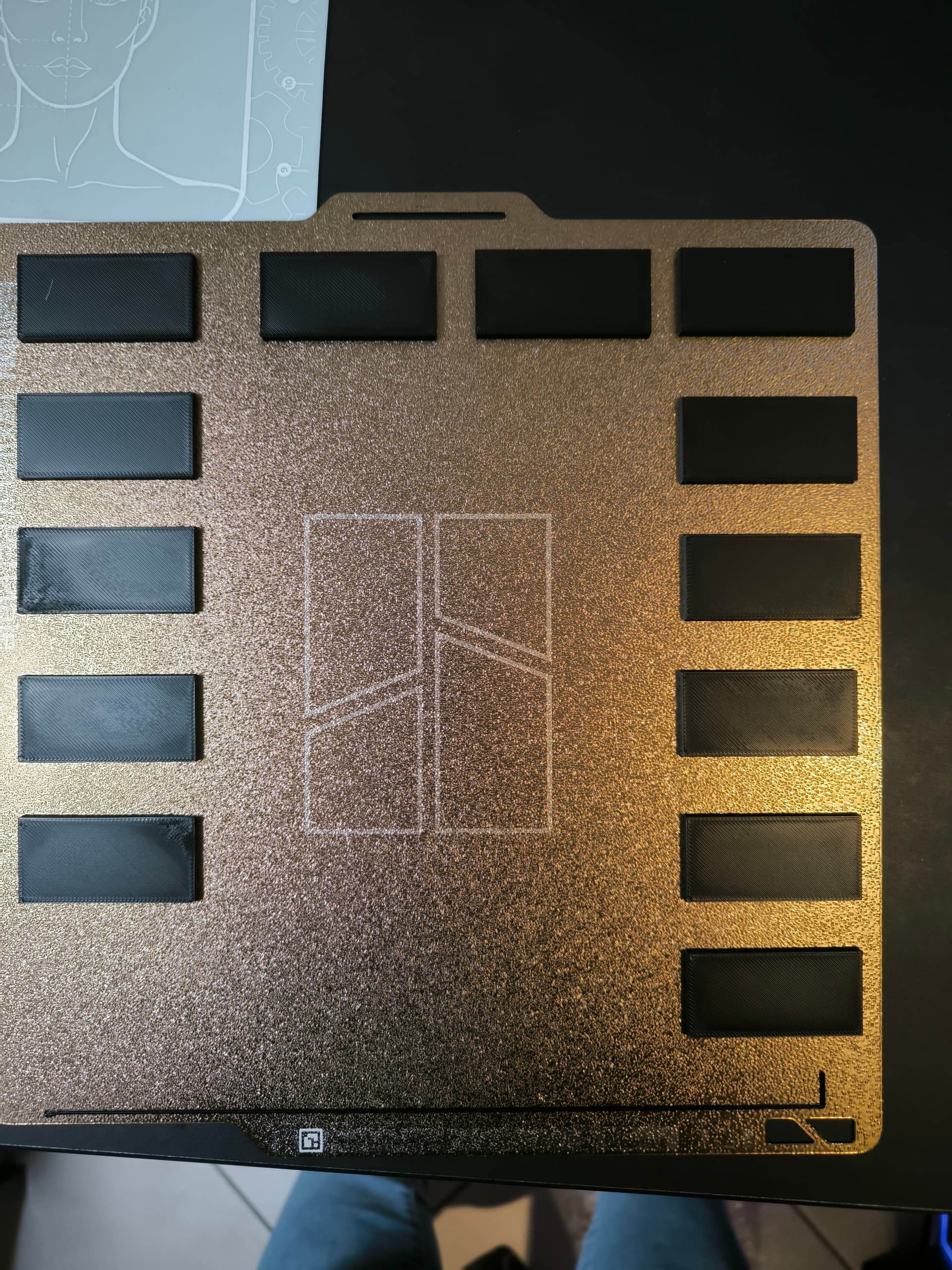 J’ai aussi (depuis les 2 premiers tests) augmenté légèrement la température du bed (un paramètre que j’avais oublié au moment de prendre en compte les préco de Sunlu) ce qui semble apporter un très léger mieux :le warping le plus marqué est toujours là, mais les « petits » ont disparus.