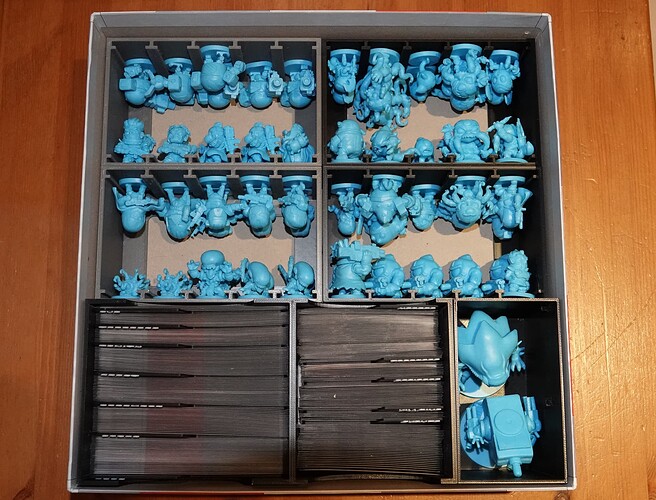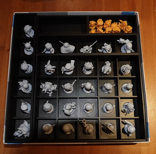 Plus sérieusement, j’ai pas mal galéré avec les racks pour les minis (de base le jeu contient pas mal de figurines assez ramasséesou qui débordent du socle et certains socles étaient légèrement « voilés »).