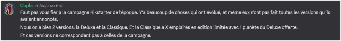 J’ai trouvé une Deluxe d’occas mais c’est une version anglaise issue de la 2ème campagne de financement.