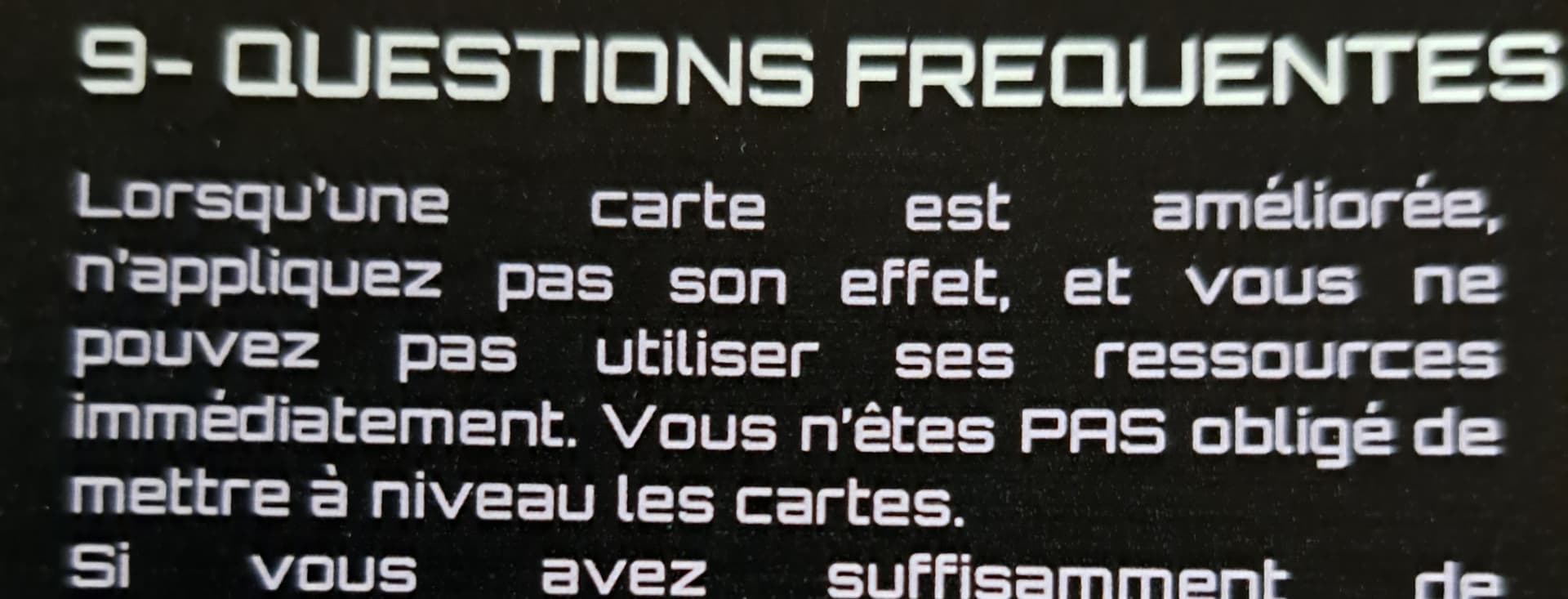 Tout à fait, j’ai mal formulé : on peut utiliser les ressources d’une carte, et ensuite l’améliorer (et effectivement, les ressources de la carte amélioré on n’y touche pas, c’est pour la prochaine fois qu’on la voit).