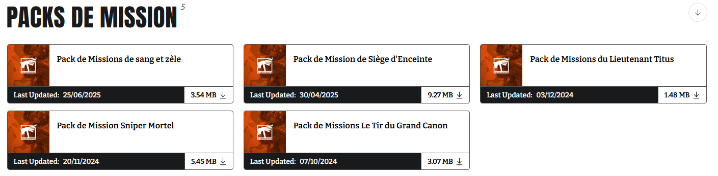 C’est mis à jour régulièrement et un système très simple permet de savoir quand une datasheet a été modifiée ou non (ce qui t’évite de tout télécharger à chaque fois). Ces datasheets sont complètes, elles te permettent donc de jouer sans achat supplémentaire (autre que les figurines bien sûr).