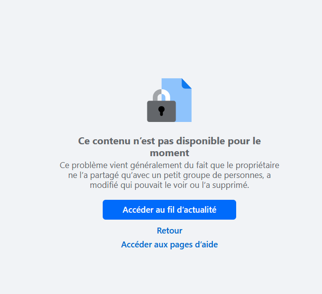Quand je clique sur le lien, il semblerait que cela soit un post privé limité à un groupe de personnes habilitées à le lire (probablement déjà membres du dit groupe) ![]()
