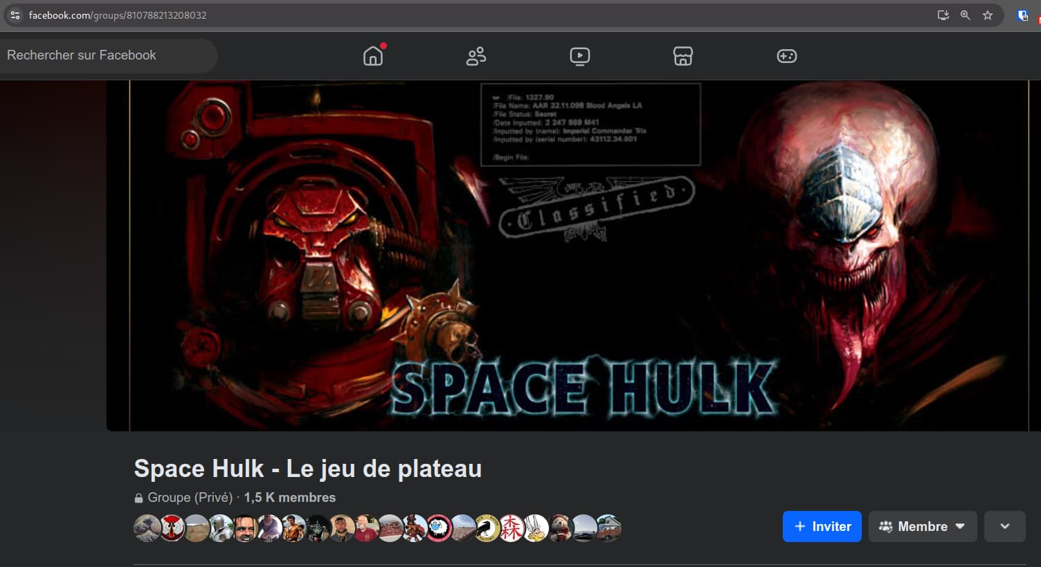 Ou sinon vous pouvez sans doute (via facebook) contacter le propriétaire du groupe Space Hulk pour qu’il vous ajoute ? (ici)