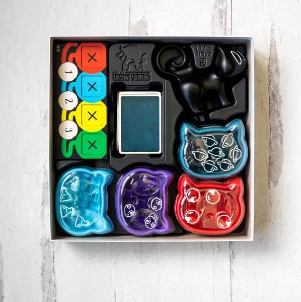 J’admet que le jeu est super beau avec les tokens en acrylique (beaucoup plus gros dans cette version) et les boites de rangement (et le chat) mais est ce que ça justifie le prix auquel il va être vendu ? Pas si sûre …