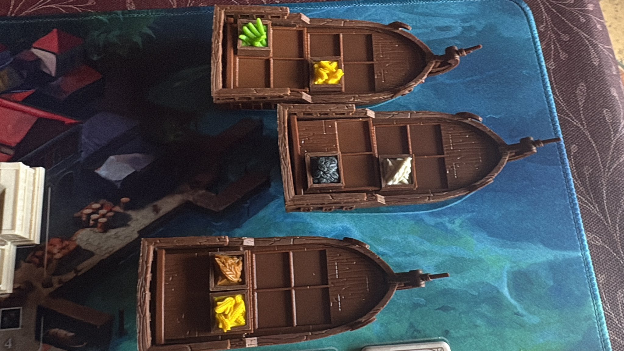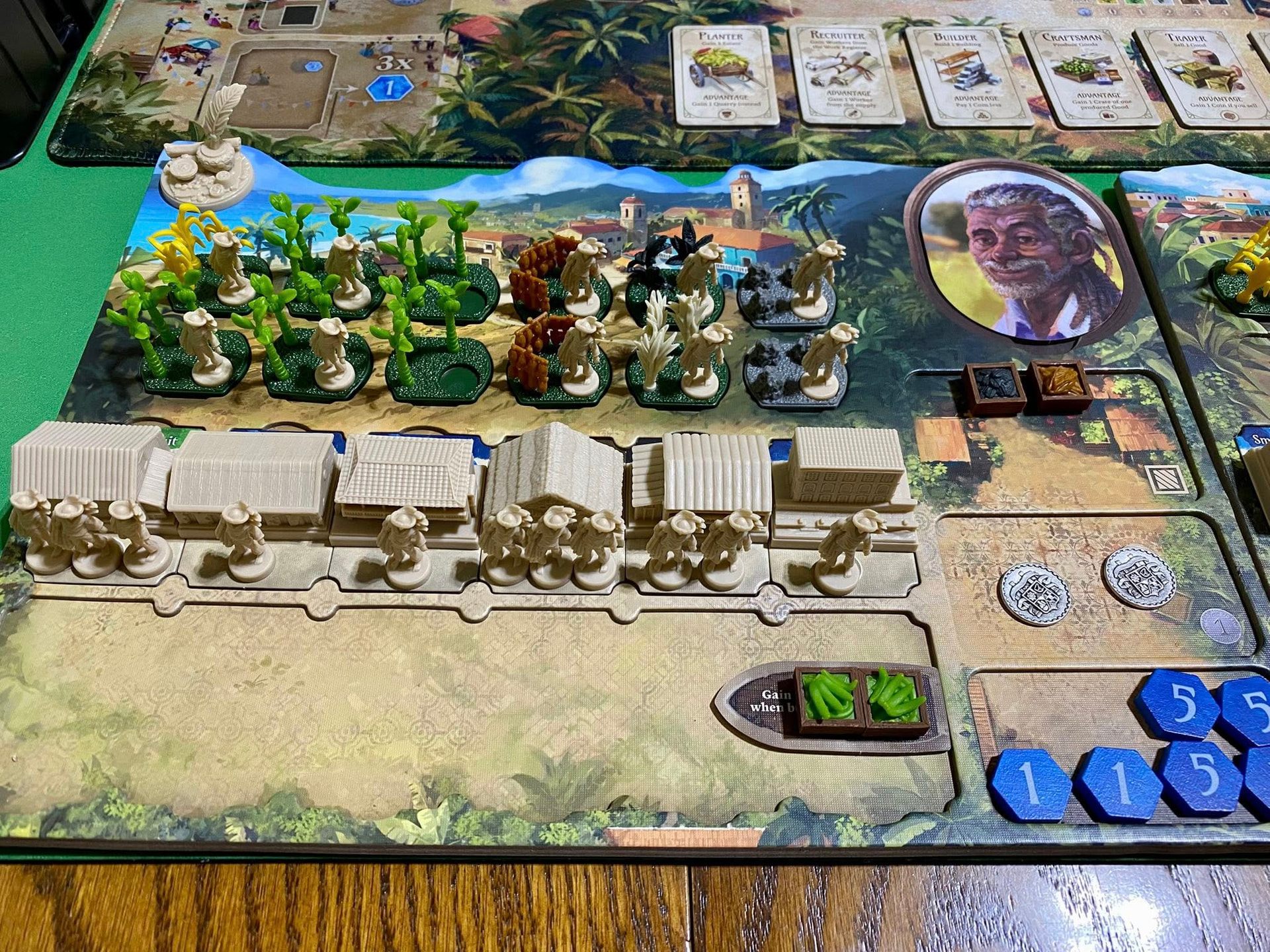 La gestion de votre plateau individuel est cruciale. Vous devez équilibrer votre main-d’œuvre (les ouvriers) entre vos plantations et vos bâtiments pour que vos usines fonctionnent. Le jeu est une course à l’efficacité où chaque point de victoire compte, sans aucun hasard de dés, ce qui en fait un modèle de stratégie « pure ».