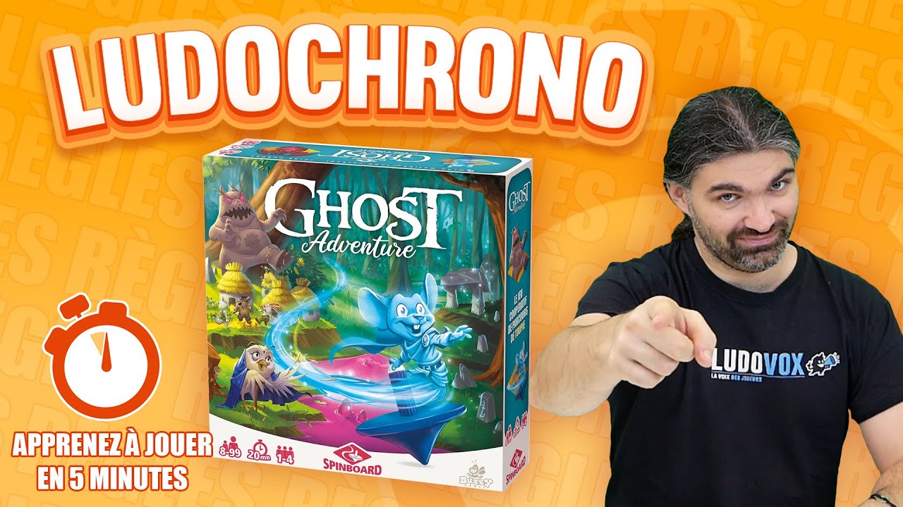 J’ai ouvert Ghost Adventures. Un jeu coopératif, jouable en solo, de défis avec une toupie sur des parcours. Un jeu original, beau, avec un matériel de fou (plateaux double couche, toupie, livret bd scénarisée, livret défis, outils pour remplacer la toupie cassée…). Pour 13.5€, foncez !