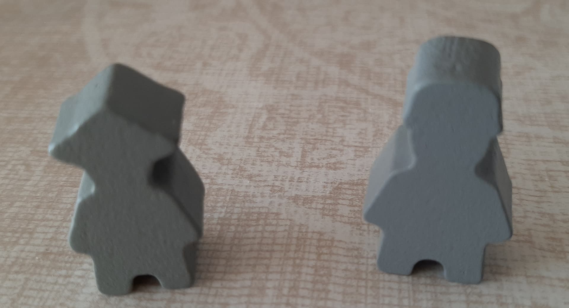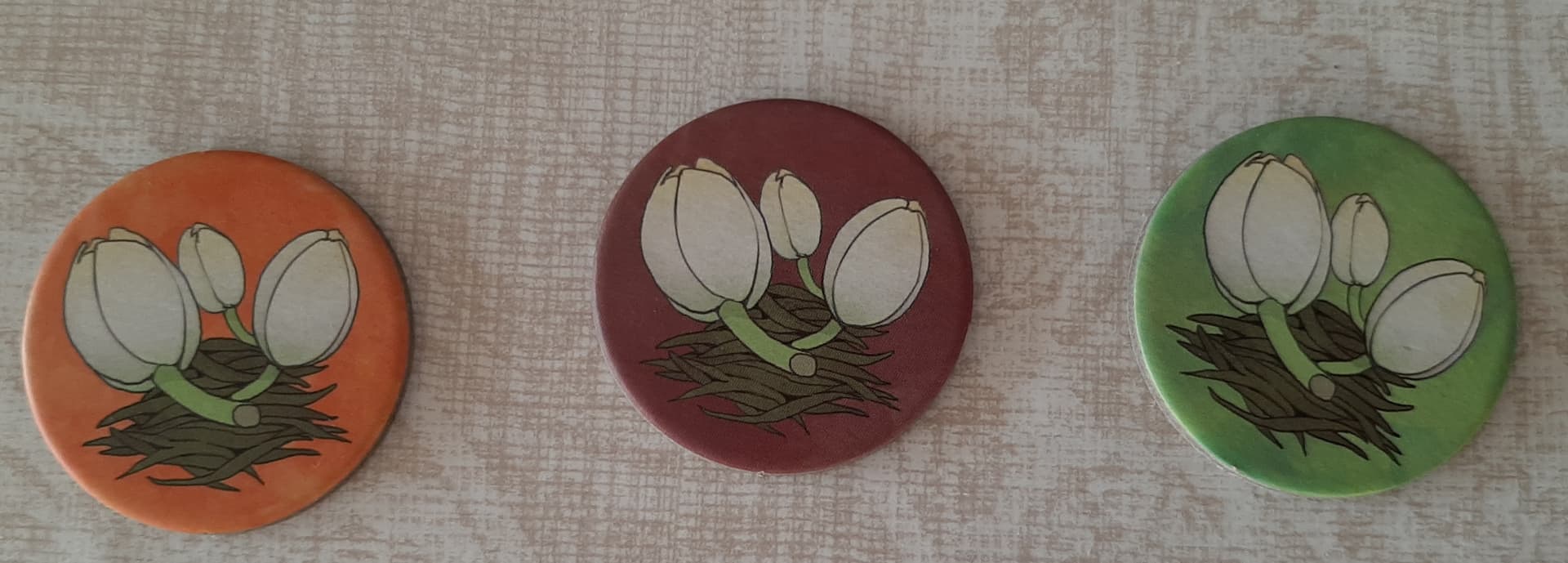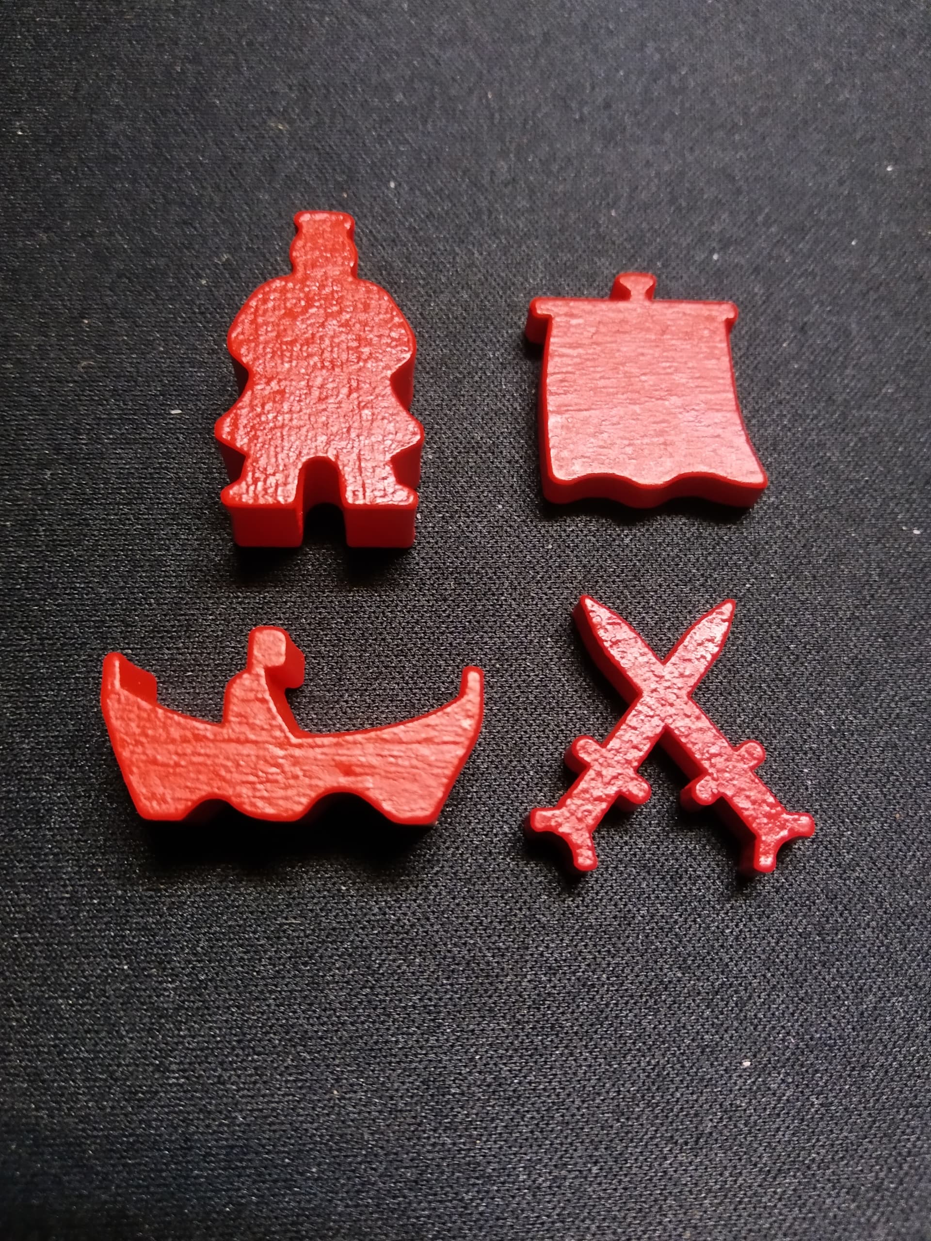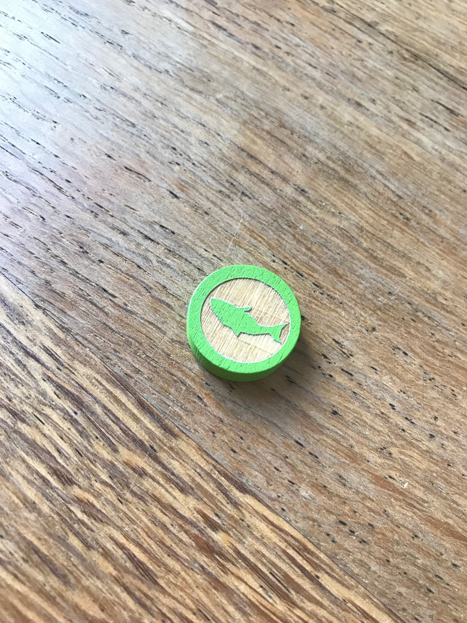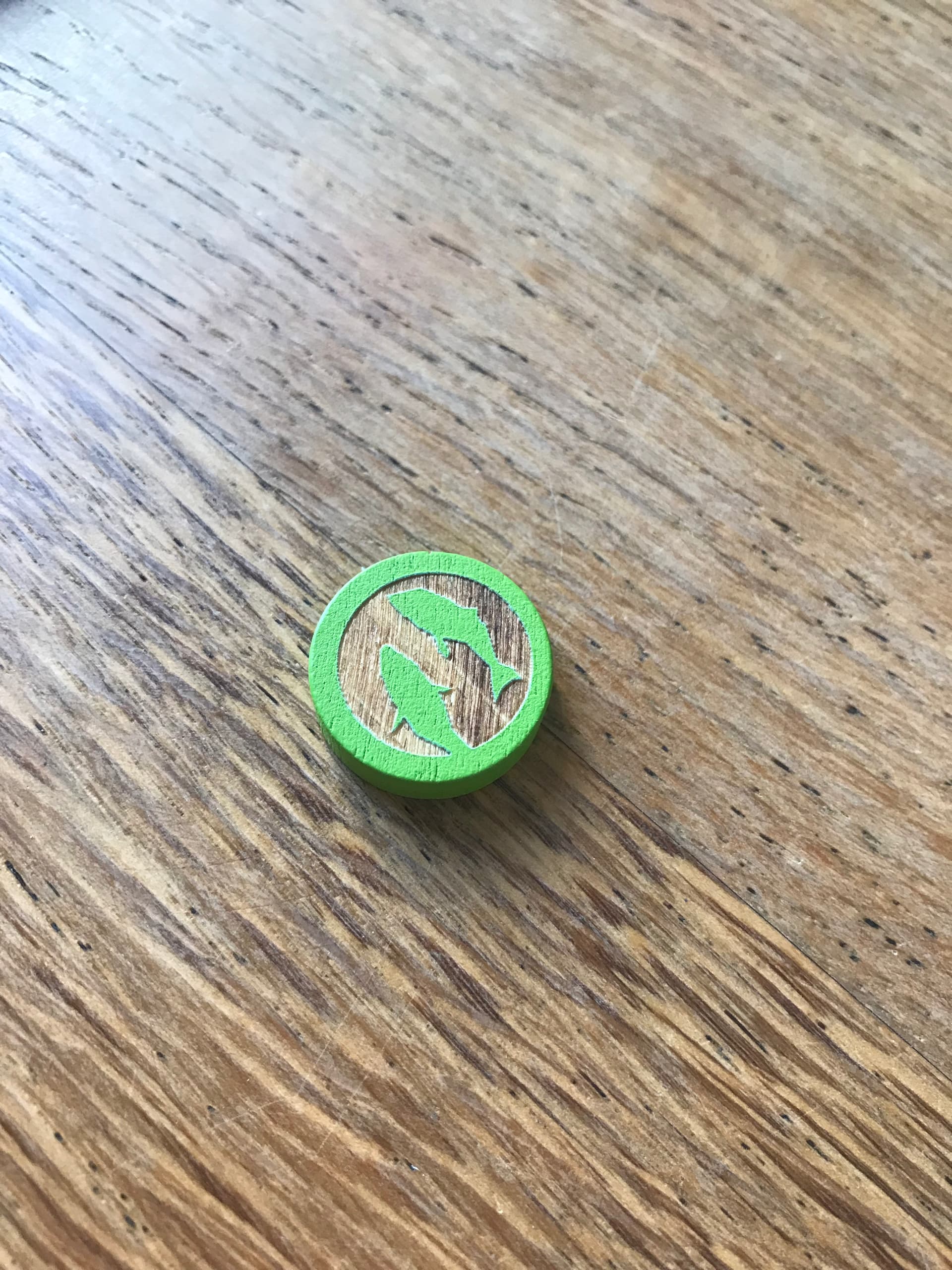 Du coup, personne n’a relancé ? Je relance, avec ces jetons que je trouve très beaux ! Le bois brut creusé qui contraste avec le bois peint, je trouve ça vraiment sympa.
