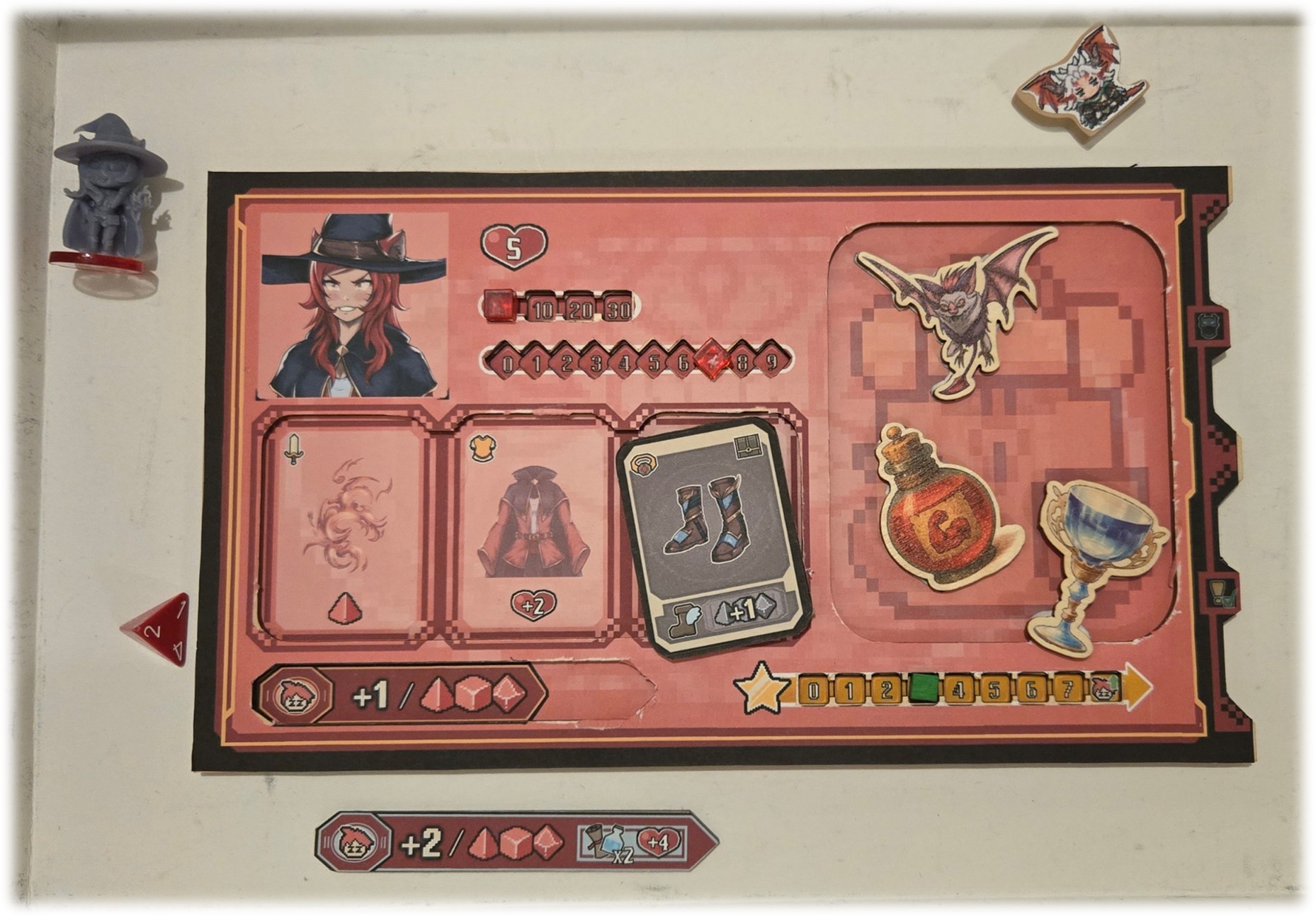 Voilà quelques images pour illustrer l’univers et mécaniques (le plateau de jeu est évolutif et peut se « flipper » en plusieurs sections) :