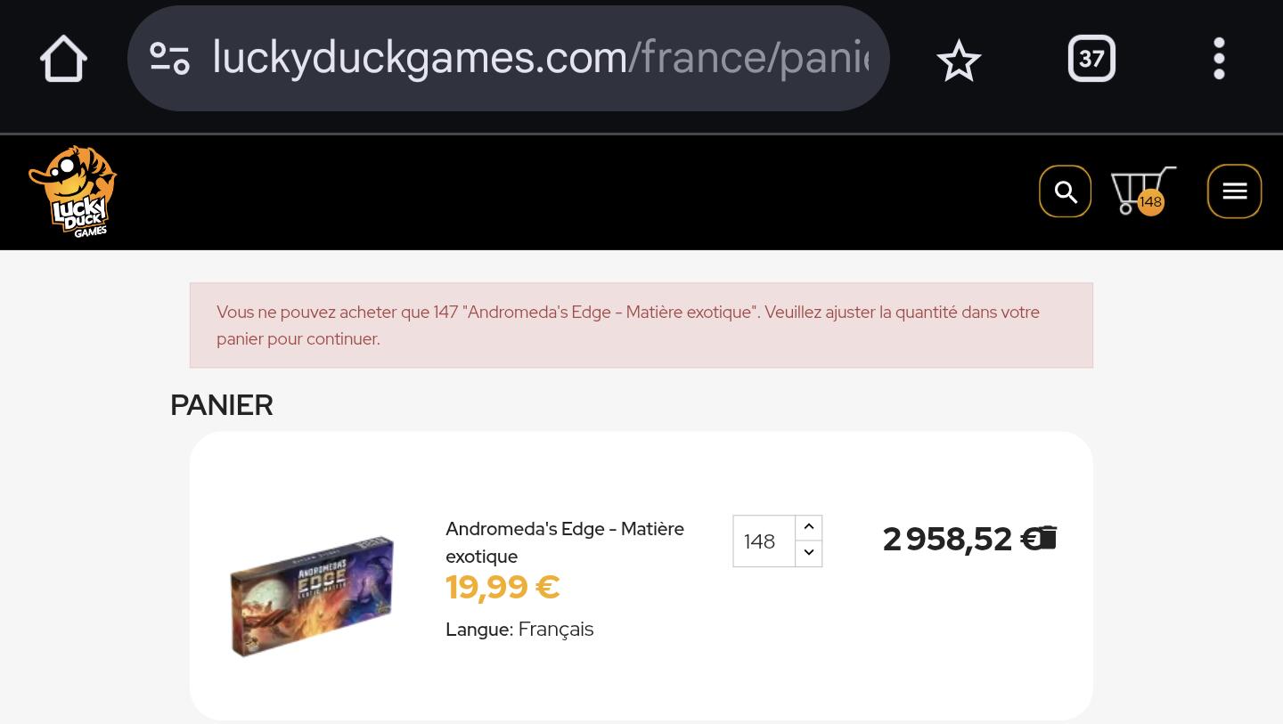 Ce qui est encore plus frustrant, c’est que j’ai régulièrement un truc susceptible de m’intéresser sur leur boutique, mais que les quantités limitées font que je ne peux pas grouper les achats. J’attendais cette extension deluxe pour acheter Matière Exotique pour Andromeda’s Edge, mais elle est maintenant épuisée…