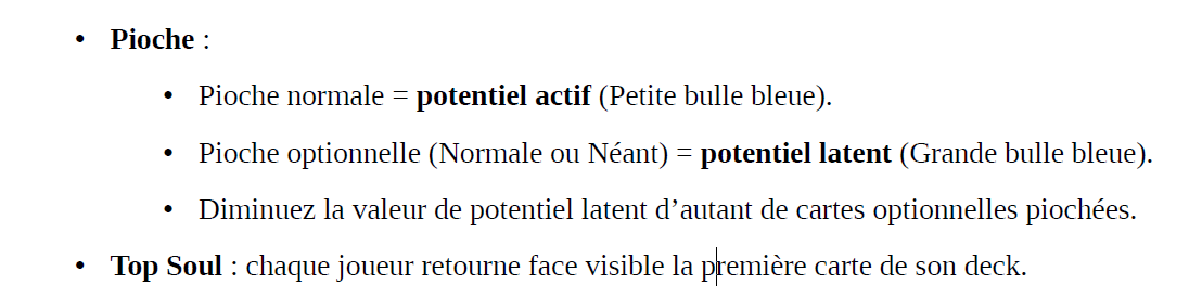 Vous piochez un nombre de carte définit par votre valeur de potentiel actif durant la phase de préparation, puis, pouvez compléter en puisant dans votre potentiel latent.