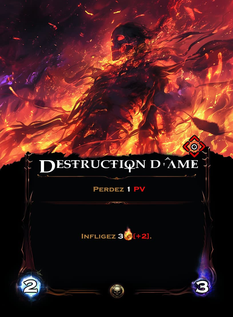 - D’une part il possède une mécanique de perte de PV unique, limitant naturellement le nombre de cartes puissantes que vous souhaiterez inclure dans votre deck et ajoutant un peu de piment et de tactique supplémentaire.
