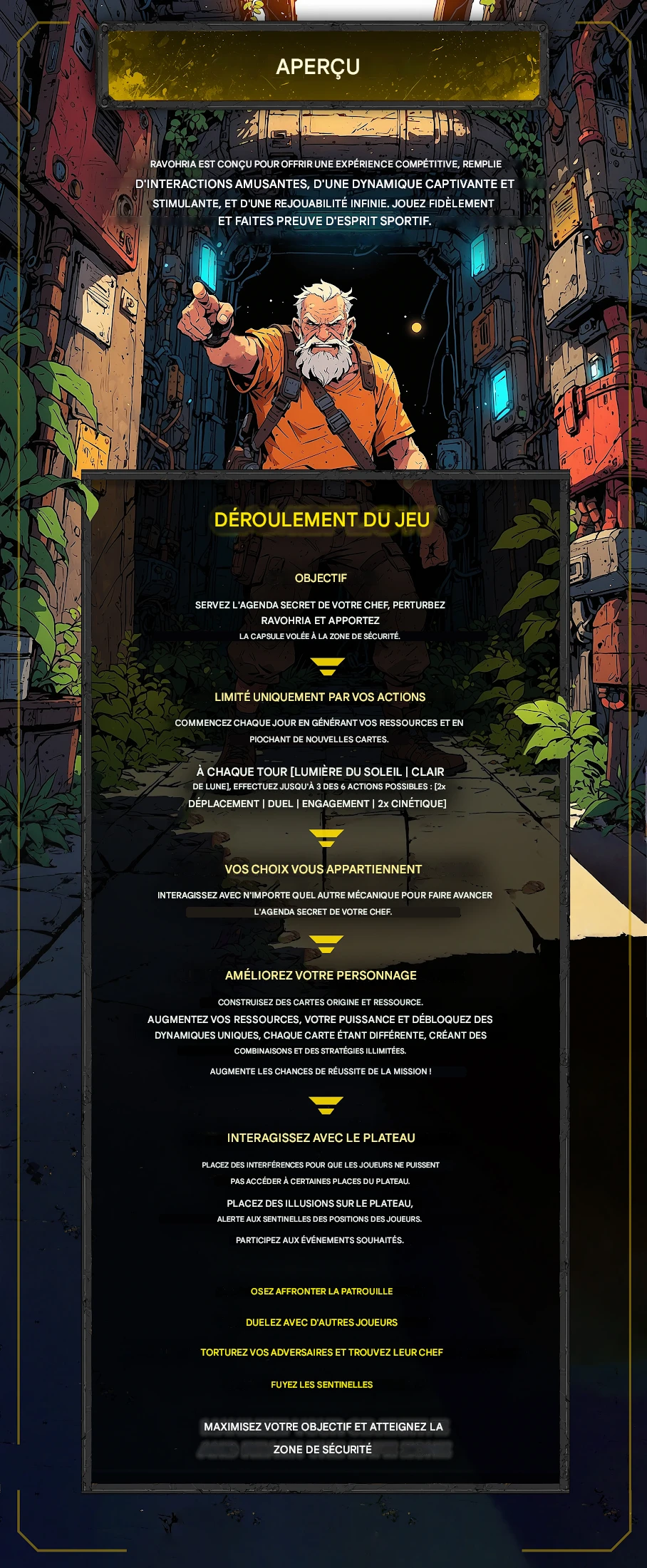 Vous avez été embauché pour perturber le contrôle de la famille Ravohria et avez réussi à capturer une capsule et ses plans dans leur laboratoire de recherche. Maintenant, échappez-vous à travers leur immense zone restreinte, semez le chaos et livrez la capsule à votre chef, tout en faisant avancer son programme personnel secret. Allez-vous réussir ?