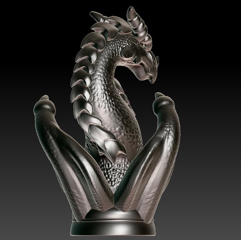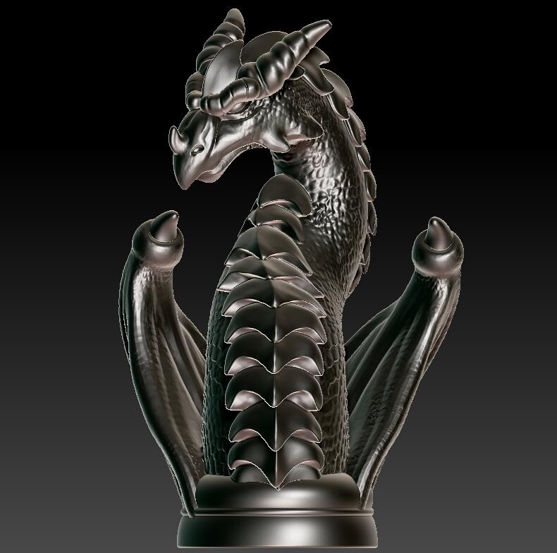 Tu peux partir sur une sous-couche noire pour la dragonne et éclaircir avec un brossage gris foncé ou bleu violet foncé par exemple. Après, c’est selon les goûts et les couleurs… j’aime bien mettre des brossages successifs gris foncé, bleu foncé, bleu clair, blanc) sur ce genre de figurine pour accentuer les reliefs.
