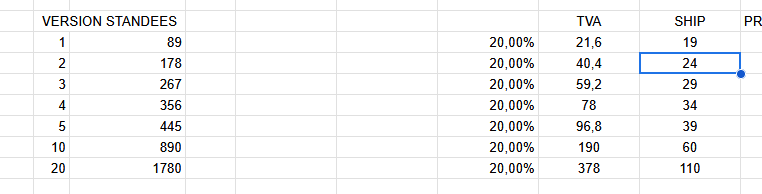 A partir de 5 pledges le port descend à moins de 8 euros mais en fait ce qui tabasse c’est la TVA… et j’ai calculé, elle commence à 24% pour tendre vers 21%, ce qui est très étonnant !