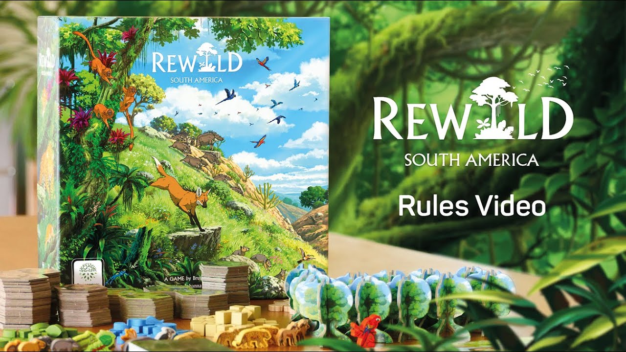 Rewild : Amérique du Sud est un jeu de société unique, de poids moyen, à base de cartes et à moteur, pour 1 à 4 passionnés de la nature et de la vie sauvage, qui peut être joué en 45 à 60 minutes.