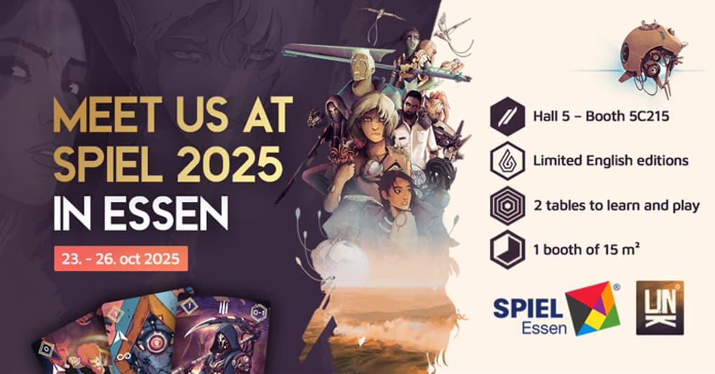 Il suffit de deux clics ! Nous serions ravis que vous laissiez un à notre jeu dans la sélection BGG pour le Spiel Essen. Rendez-vous simplement sur cette page et cliquez sur l’icône pouce levé à côté de notre jeu ! Plus un jeu reçoit de votes, plus il monte dans la liste et plus il est recommandé aux visiteurs du festival :