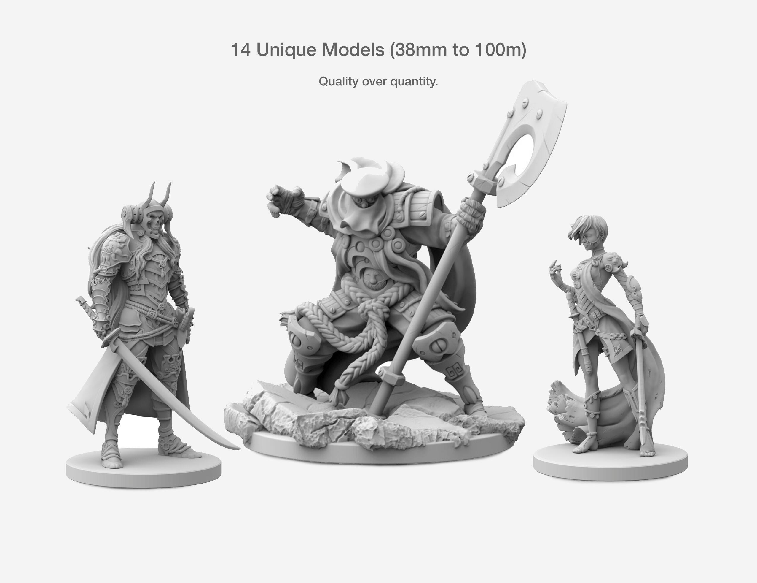 Sankokushin core game has 14 unique, high-quality miniatures.