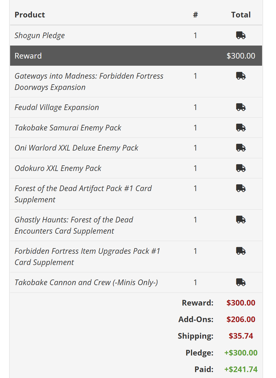 Alors je commençais a faire ma petite popotte d’add-on puis je me suis aperçu que rien que l’envoi de mon Pharaoh Pledge c’est 119 dollars…