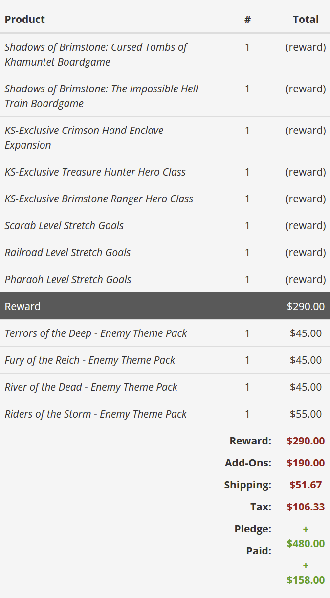 Et beh, j’ai un pote qui voulait se greffer pour que je lui prenne un second Pharaoh pledge et l’option est possible mais à 350 dollars HT (lors du KS je l’ai eu à 290 dollars).