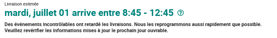Des événements incontrôlables ont retardé les livraisons. Nous les reprogrammons aussi rapidement que possible. Veuillez revérifier les informations mises à jour le prochain jour ouvrable
