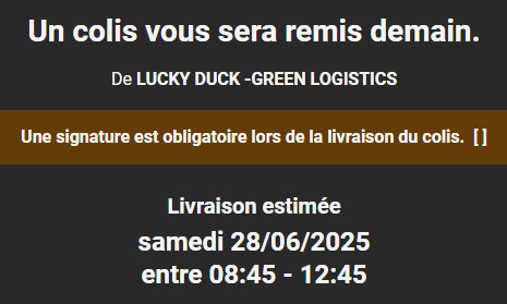 Colis jusqu’ à présent prévu pour mardi mais le suivi a changé :