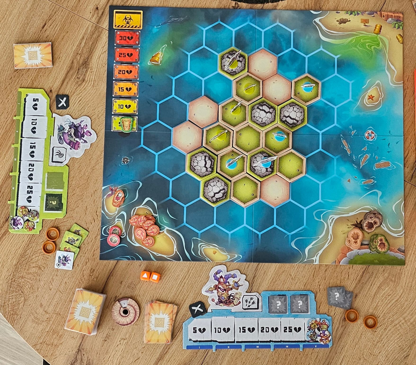 Les règles simples et intuitives de Snails sont basées sur la planification d’actions. Il suffit de choisir secrètement 5 cartes d’action et 2 escargots de votre escouade pour les exécuter, puis de regarder le désordre que vous provoquez ! Ajoutez à cela les capacités spéciales des héros, des dizaines de cartes d’action représentant des armes ou des attaques spéciales et des dés personnalisés, et vous obtiendrez une expérience de jeu exceptionnelle.