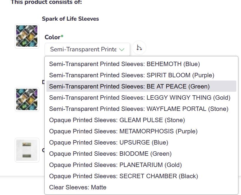 attention: dans le all-in sleeves, il est possible de splitter l’item 2-packs et l’item 5-packs, pour mélanger plein de types de sleeves. Il ne faut bien sûr pas le faire