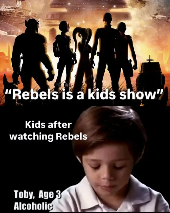 Hésite pas à montrer Rebels à ton gamin, c’est vraiment bien. Et ça suit un schéma à la Harry Potter en accompagnant la montée en âge de l’audience, année après année, le ton de la saison 1 est assez enfantin et au fil des années ça bascule dans des trucs un peu plus dark (vador).