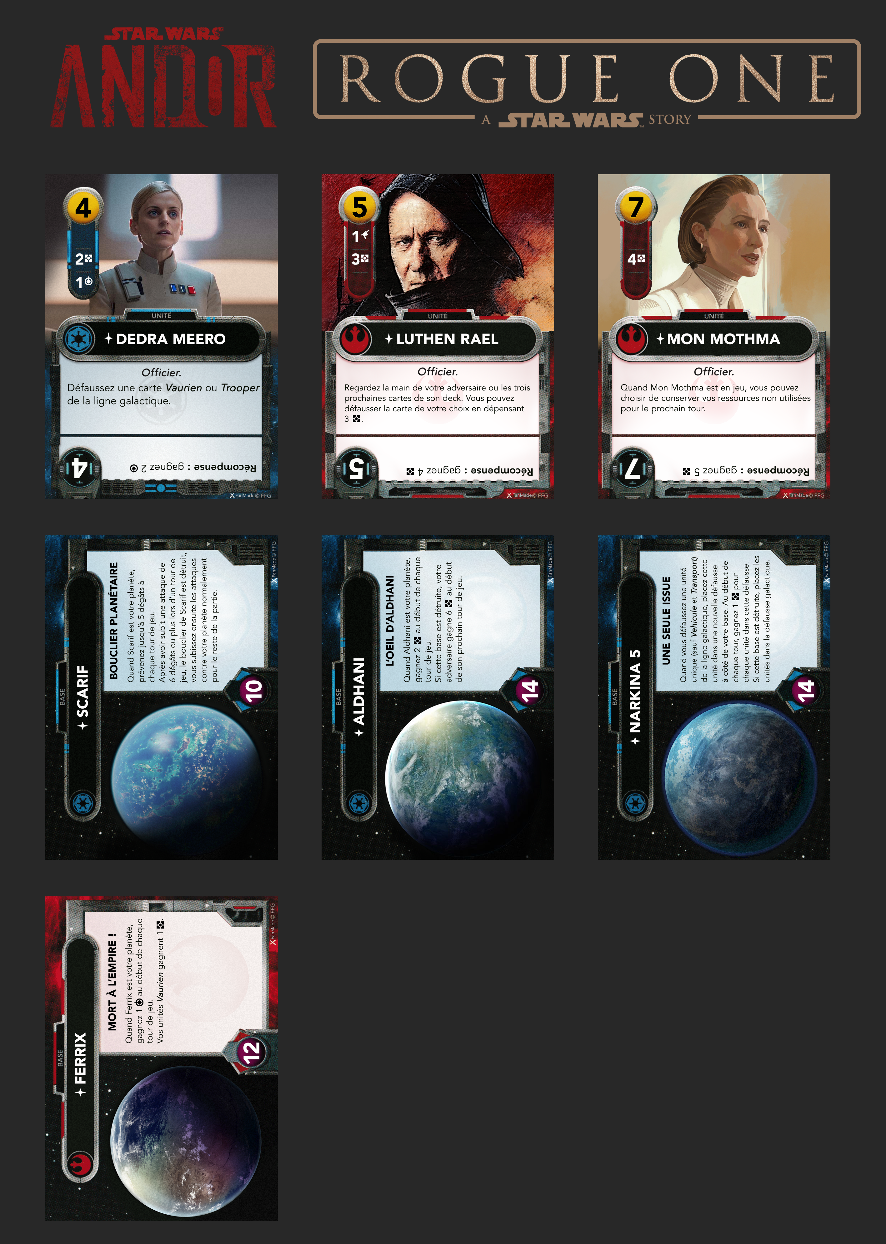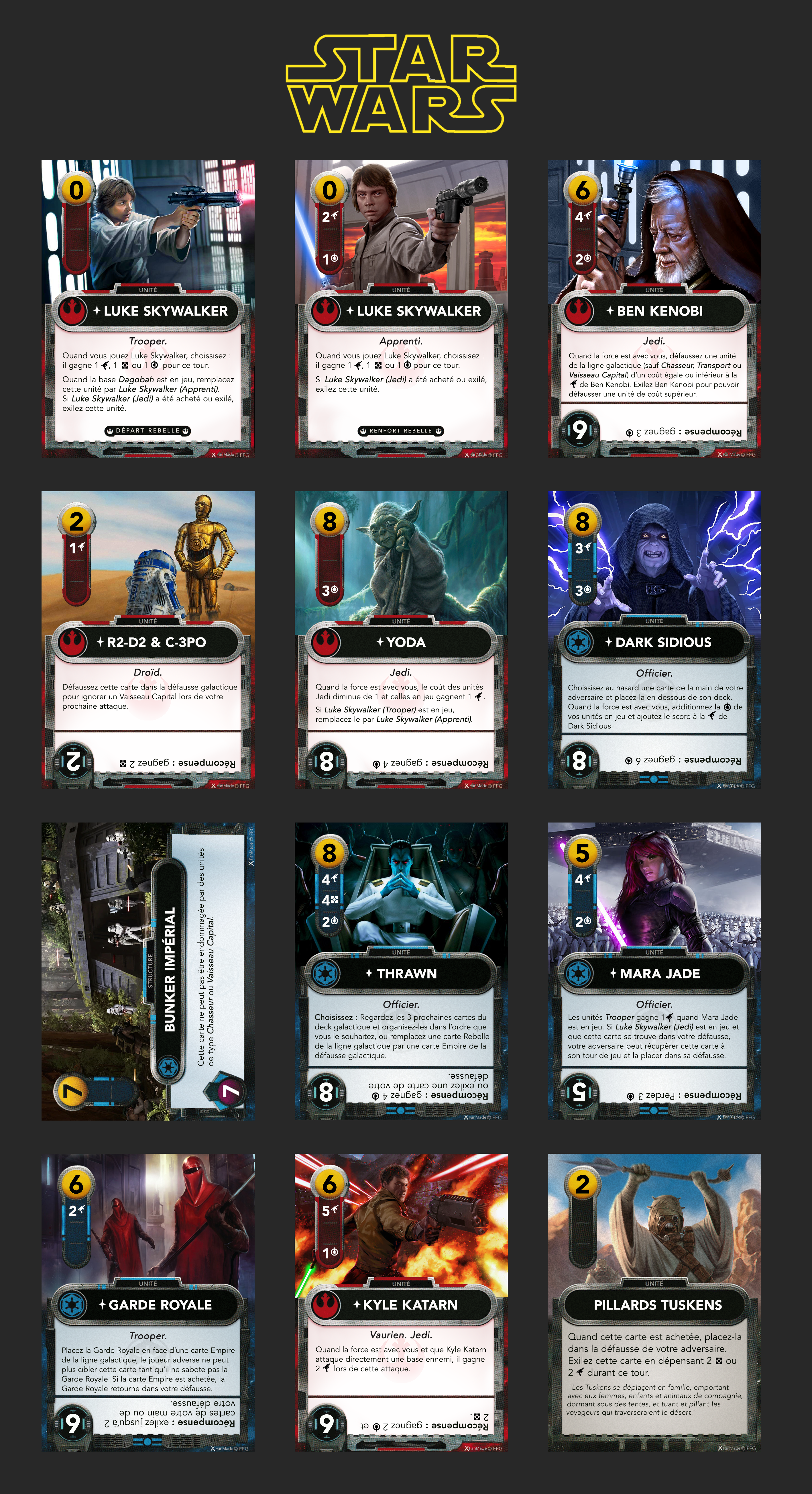 J’ai donc aussi fait des cartes pour certains des personnages de la première trilogie qui manquaient au jeu de base, mais aussi de l’univers étendu ainsi que de la série Andor et Ahsoka.