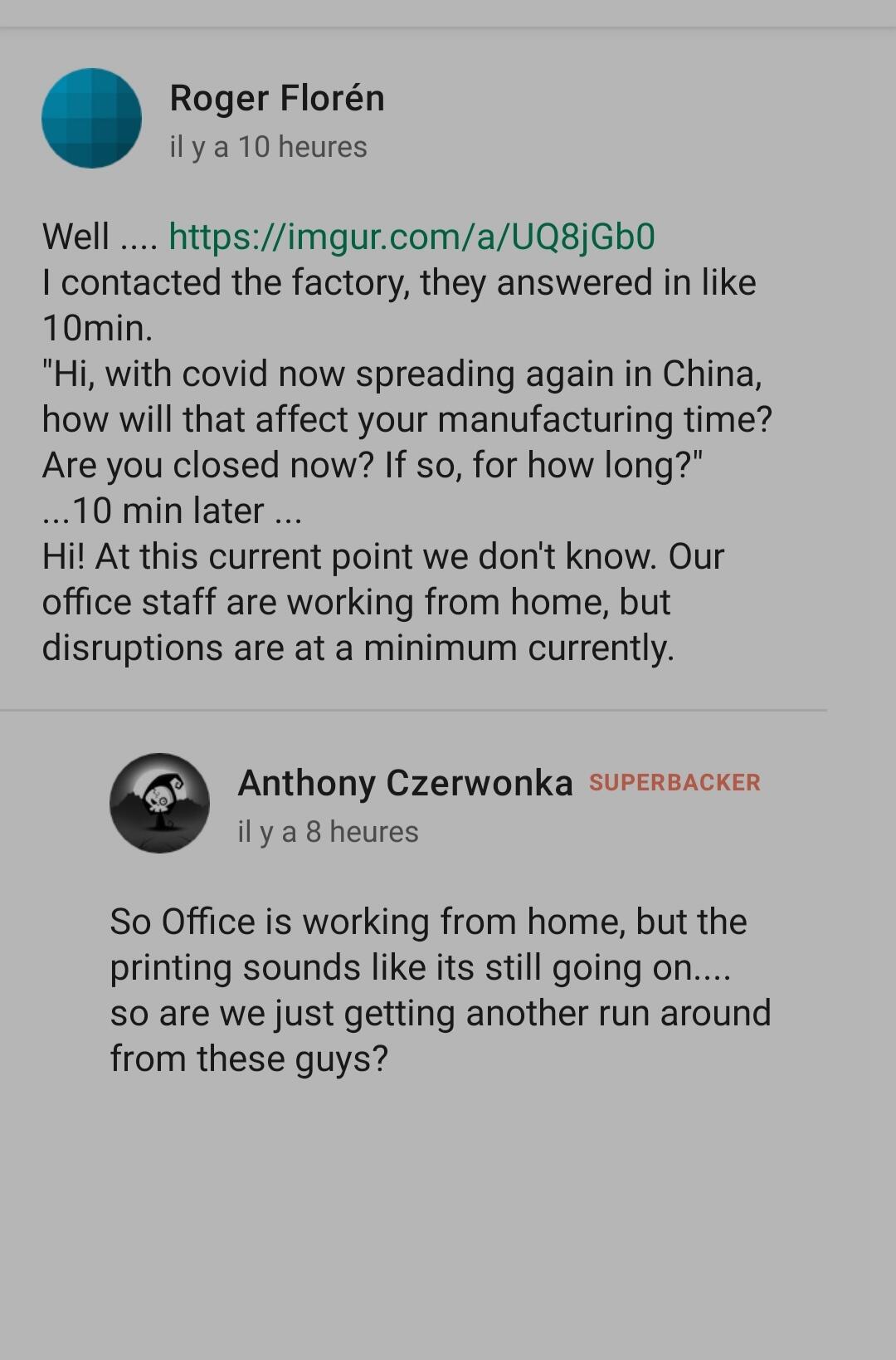 Même si la date de sortie du jeu en français est incertaine, je vous confirme que celles et ceux qui ont backé la version française recevront bien leurs boîtes de jeu.