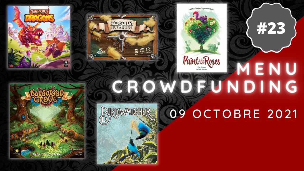 Semaine relativement calme, mais avec un gros suivi à faire sur les semaines précédentes. On y trouve quand même quelques projets intéressants, comme Paint the Roses, Bardwood Grove, ou encore Birdwatcher. Sans oublier les français de Lord Raccoon Games qui nous reviennent avec Taverns & Dragons.