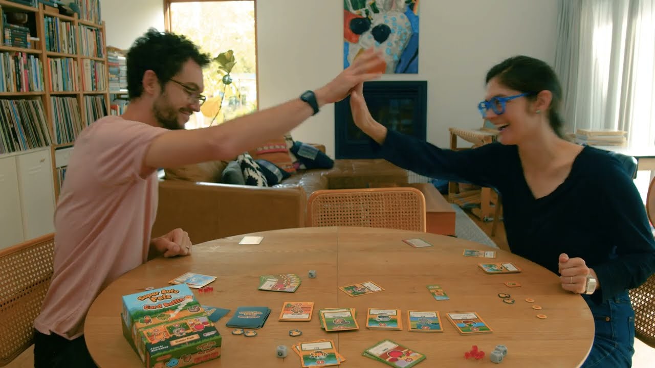 Super Auto Pets Card Battle est un jeu de cartes rapide et passionnant. Facile à apprendre, rapide à jouer, mais très stratégique, ce petit jeu est présenté dans une petite boîte et prend peu de place sur votre table de jeu. Les amateurs de jeux de cartes apprécieront la possibilité de faire une partie rapide (ou trente) ainsi que la portabilité du jeu. Vous voulez quelque chose de plus grand pour une soirée jeux entre amis ? Chaque paquet de Super Auto Pets Card Battle est un jeu autonome, mais peut être combiné avec d’autres paquets pour permettre à plus de joueurs de participer à l’action !
