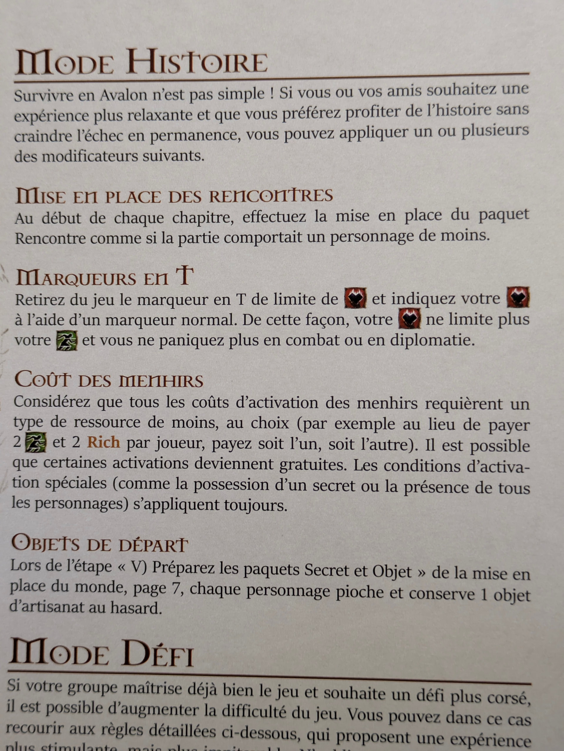 Dans la mise à jour des règles, le repos a été simplifié, et le mode histoire contient une réduction du coût des menhirs (je pense pas que j’appliquerais l’ensemble du mode histoire quand-même, juste de quoi réduire un peu le farming). Si on n’est pas à fond sur la partie « survie » du gameplay, c’est vraiment pertinent.