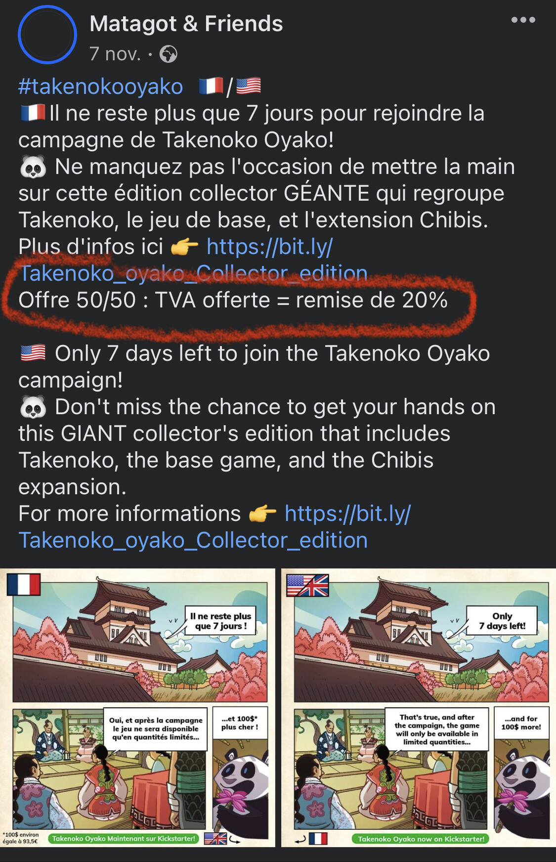 Mais comme l’éditeur passe par backerkit, et qu’il a pas envie de se faire chier parce que backerkit applique la TVA selon le pays de destination, ben il applique la TVA pour tout le monde