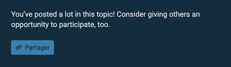Bon, faut que j’arrête de causer. 1. j’ai du taf et 2. je me fais gourmander par Discourse